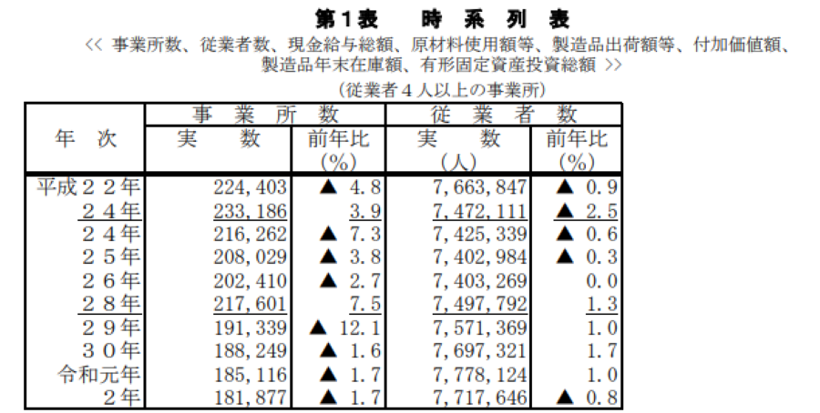 出典:経済産業省「工業統計調査 概況文」2020年、P.1