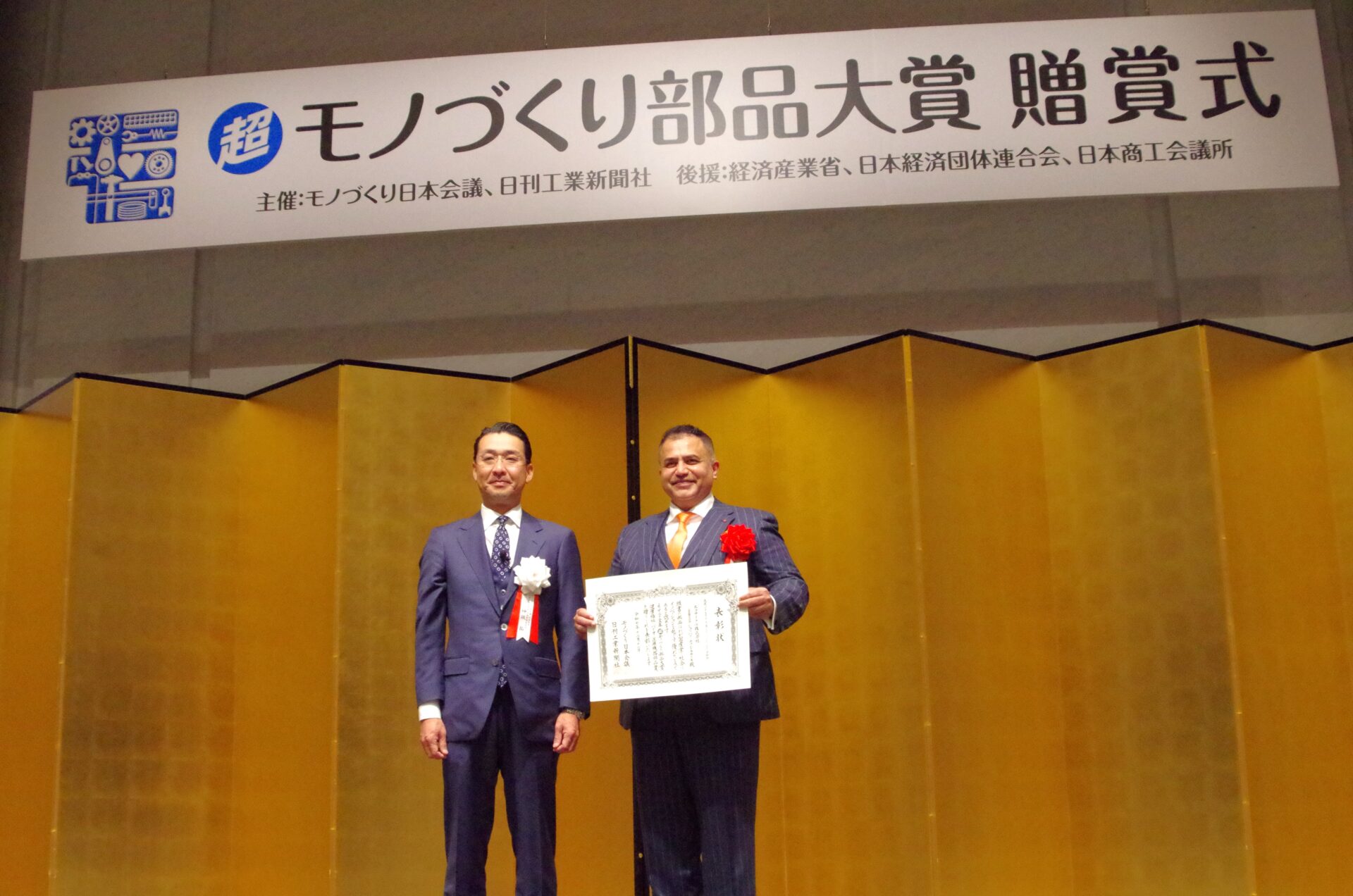 “超”モノづくり部品大賞は、日本のモノづくりの競争力向上を支援するため、産業・社会の発展に貢献する「縁の下の力持ち」的存在の部品・部材を対象に、モノづくり日本会議と日刊工業新聞社が主催となり、2003年より実施されている表彰制度です。経済産業省、日本経済団体連合会、日本商工会議所が後援をされています。
